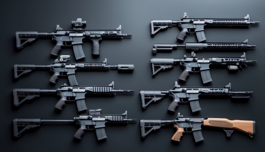 - Modifikasi: Dapat dilengkapi dengan berbagai aksesori seperti scope, silencer, dan grip.